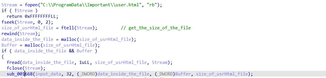 Now, to be sure that I extract the key from the anonymous file correctly, I will debug the function that gets data from that file in ida→