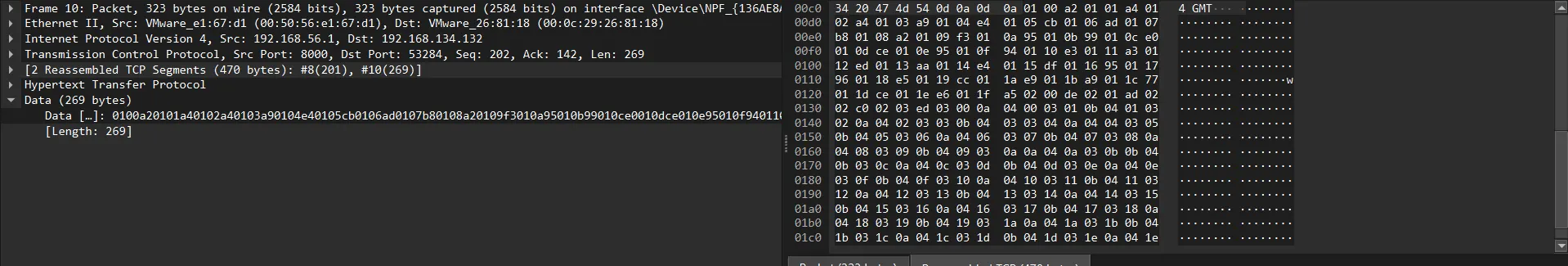 I also got the packets of the DLL file, which is 16912 bytes.