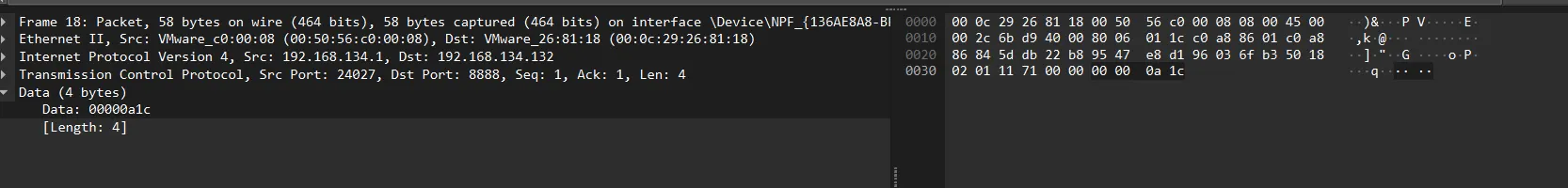 The ransomware tries to connect to the C2 server with IP=192.168.134.132 and port 8888, then it sends the size of encrypted data to it, and then the data itself.
