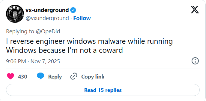 It is obviously not safe to run/debug a program that is supposly a malware on your main machine but i do debug malwares on my main windows machine cuz I’m not a coward 💪