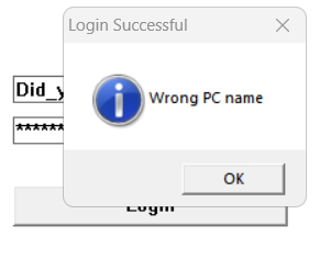 And we got that window mentioning that pc name is wrong, that could be a hint or something.