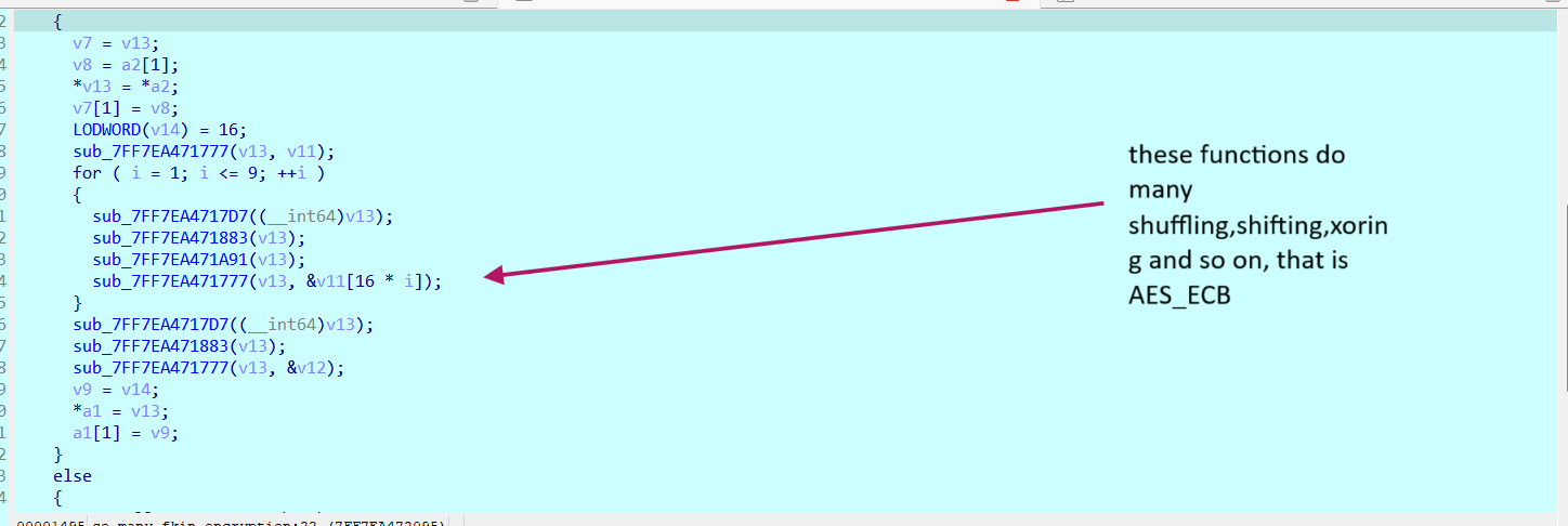 by searching inside this encryption function, we find it is the AES_ECB algorithm